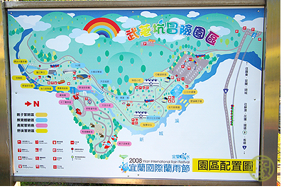 下過雨的天空出現一道彩虹,這個標誌在園區裡隨處可見,很符合蘭雨的意像。