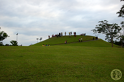 東丘上可眺望公園的網球場。公園南側的草坪廣場。