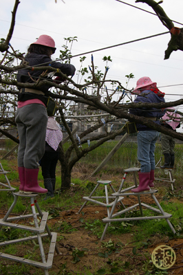 有圖為證,大家都站在梯子上工作,果然是高接梨。